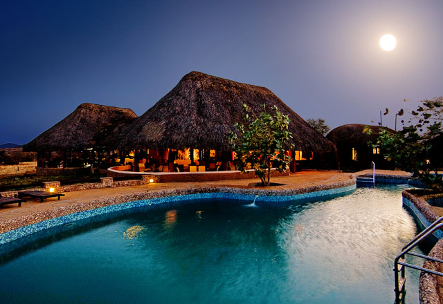 The lodge is built to reflect the architectural heritage of the local communities whose sons and daughters make up the majority of the work force at the lodge. Fifteen cottages, each with two bedrooms are built in an arch formation on either side of the public areas to surround the waterhole but leaving a wide gap to allow the animals free movement to the water.